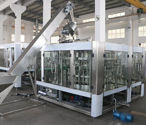 啤酒灌裝機內(nèi)部一次完成洗瓶、灌裝、封蓋三道工序,瓶子磨損小、傳動準確平穩(wěn)、瓶型更換便捷。 特殊設計的沖瓶機瓶夾結(jié)實耐用,不接觸瓶口螺紋部位,避免瓶口二次污染。 啤酒灌裝機與液體接觸的零部件全采用優(yōu)質(zhì)不銹鋼材料或食品級工程塑料,符合國家食品衛(wèi)生標準 。 出瓶撥輪瓶底托板采用螺旋下降方式,變換瓶型無須調(diào)整出瓶輸送鏈高度。