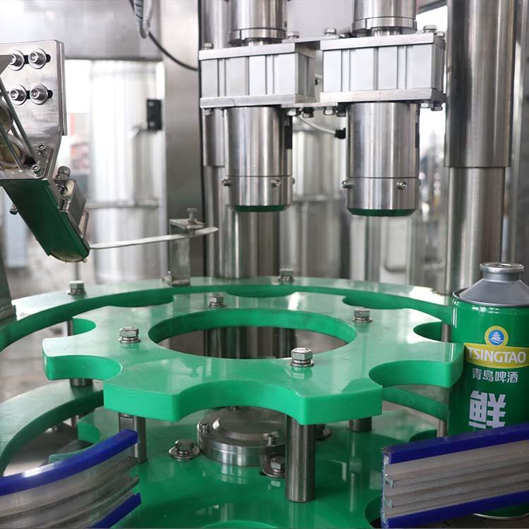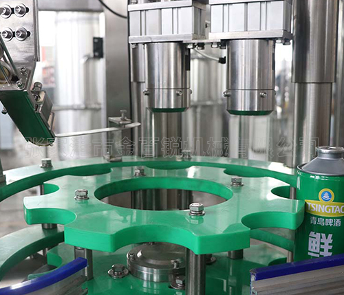 4)進(jìn)瓶部分采用螺桿進(jìn)瓶,確保進(jìn)瓶平穩(wěn),灌裝啤酒時(shí),采用凸輪或者氣缸升降,并且增加對(duì)中裝置,灌裝平穩(wěn)又方便,也能達(dá)到省力的效果。對(duì)于啤酒灌裝,灌裝時(shí)采用專業(yè)的南輕啤酒閥,減少空氣含量,進(jìn)一步提升二氧化碳的含氣量,且不會(huì)出現(xiàn)噴瓶的現(xiàn)象。